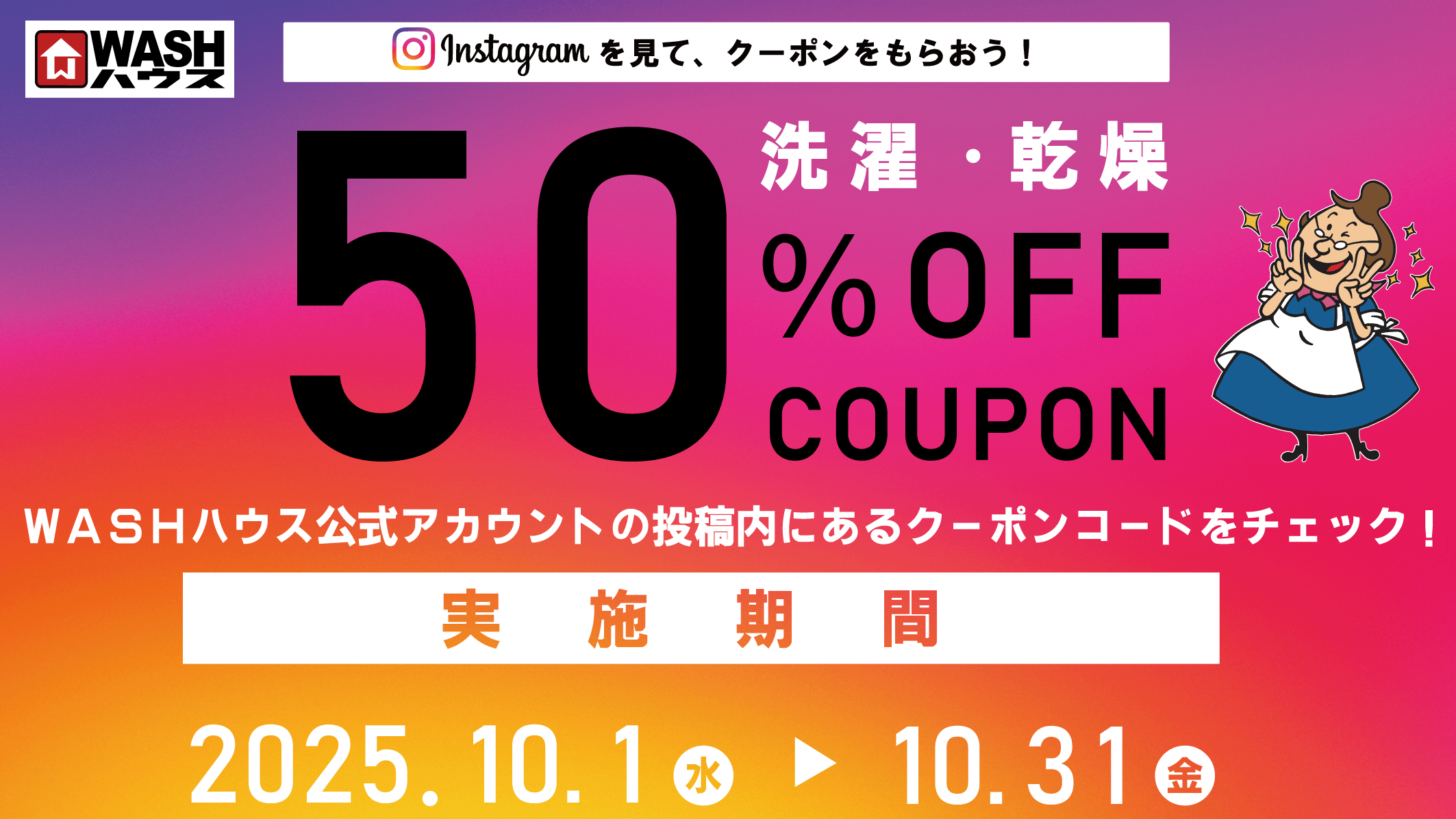 - WASHハウス宇宿店では10/11(土)・10/12(日) 10:00~18:00